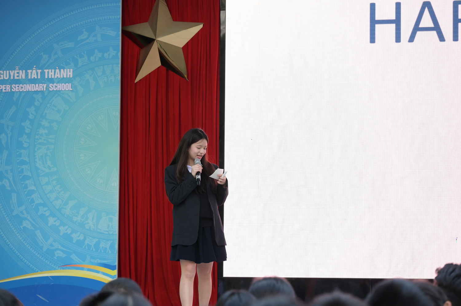 Buổi sáng mở màn bằng không gian lắng đọng nhưng đầy quyết liệt của nội dung Hùng biện. Vượt ra khỏi khuôn khổ của một cuộc thi ngôn ngữ, đây là diễn đàn để học sinh của mái trường mang tên Bác khẳng định tầm vóc tư duy và bản lĩnh cá nhân. Giữa bối cảnh thế giới đang đầy biến động bởi các xung đột, chủ đề “Hòa bình” không chỉ là một đề tài xã hội, mà đã trở thành tiếng lòng, là lời khẳng định về sự trưởng thành trong nhận thức và khát vọng kiến tạo một thế giới nhân văn hơn của thế hệ trẻ. Sân khấu trở thành nơi trình diễn của những diễn giả trẻ. Sự điềm tĩnh trong cách đặt vấn đề và thần thái chuyên nghiệp chính là điểm sáng lớn nhất của phần thi này.