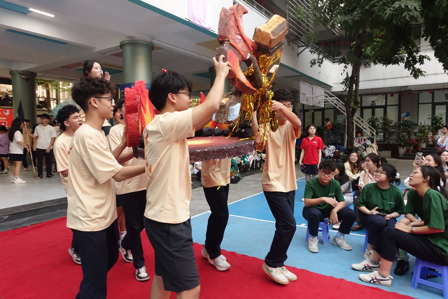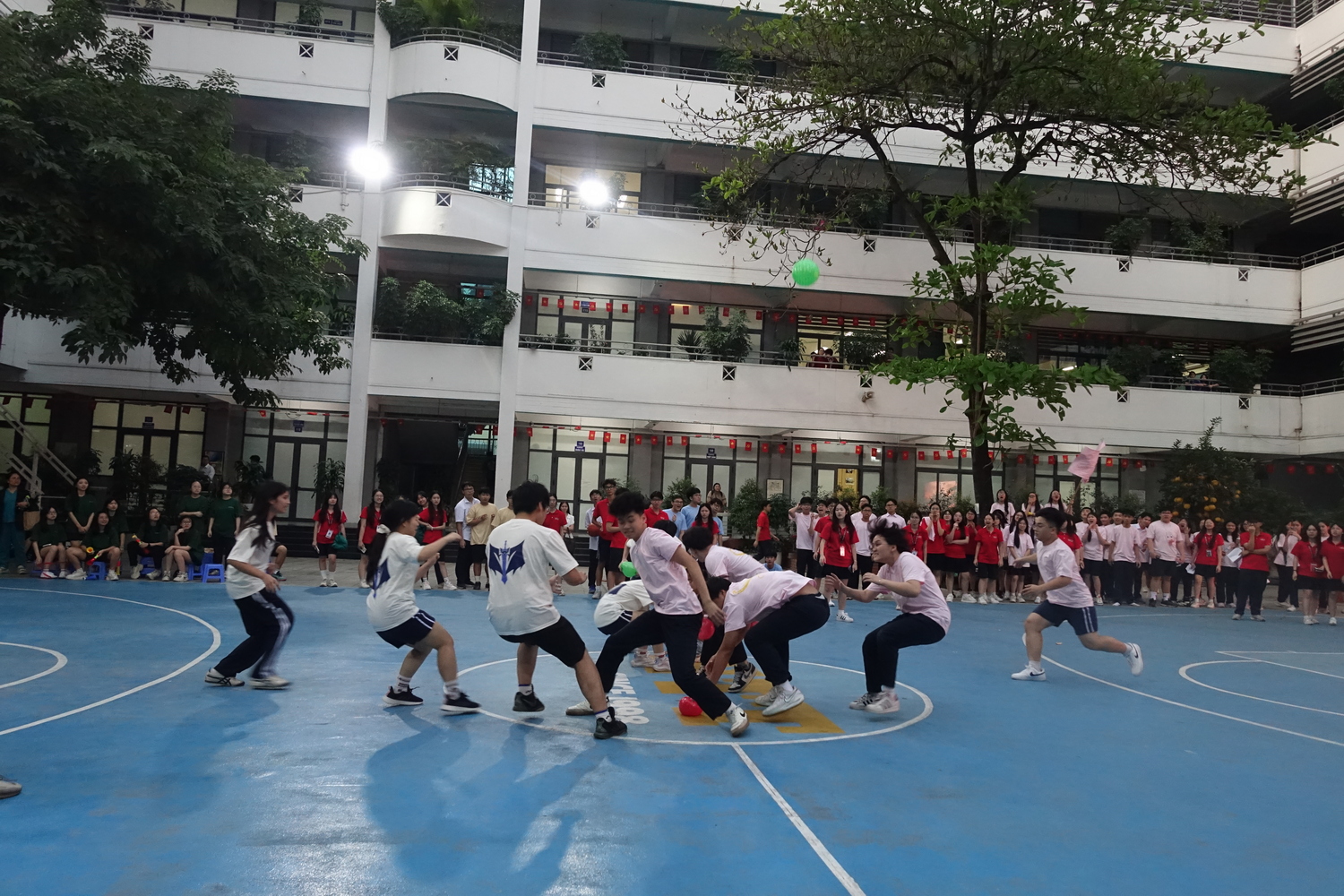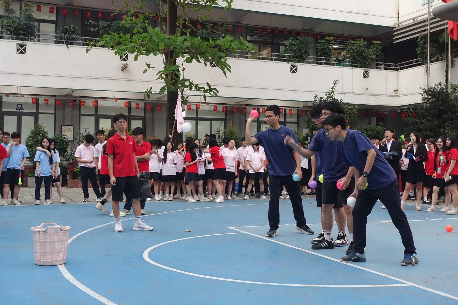 Ngay sau nghi thức rước trượng, sân trường nhanh chóng trở thành “chảo lửa” với chuỗi hoạt động thể thao tập thể.
