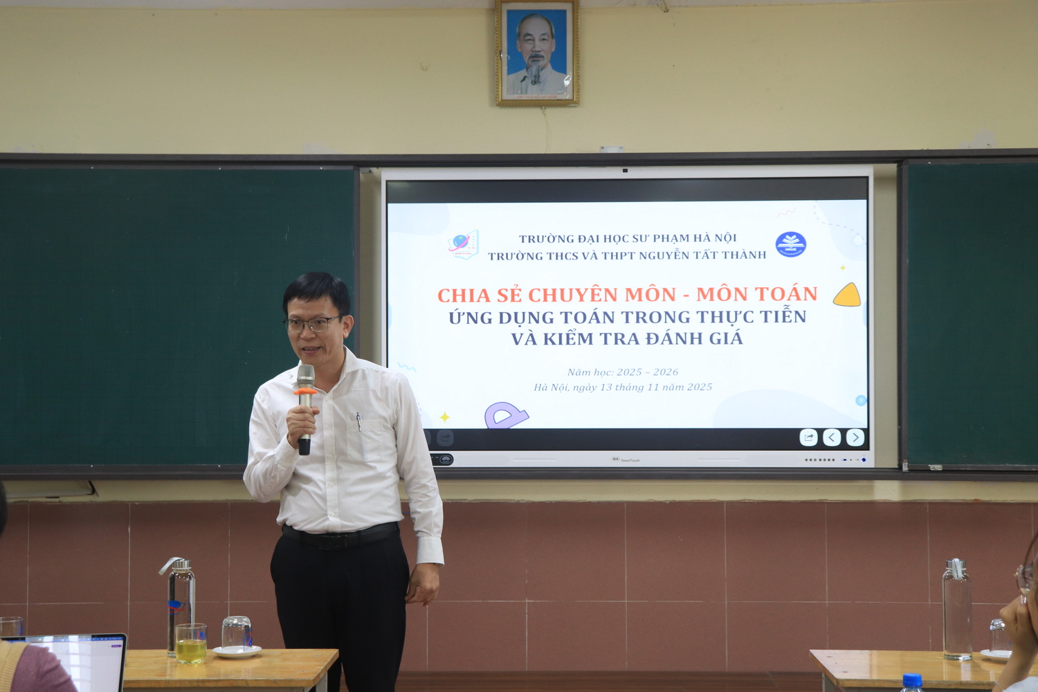 Ngày 13/11/2025, Tổ Toán trường THCS và THPT Nguyễn Tất Thành tổ chức buổi sinh hoạt chuyên môn với chủ đề “Ứng dụng Toán trong thực tiễn và kiểm tra đánh giá”. Buổi chia sẻ đã diễn ra trong không khí sôi nổi, là dịp để các giáo viên trao đổi kinh nghiệm, mở rộng kiến thức chuyên môn và tìm kiếm những cách thức áp dụng Toán học một cách hiệu quả trong dạy học và đánh giá học sinh.