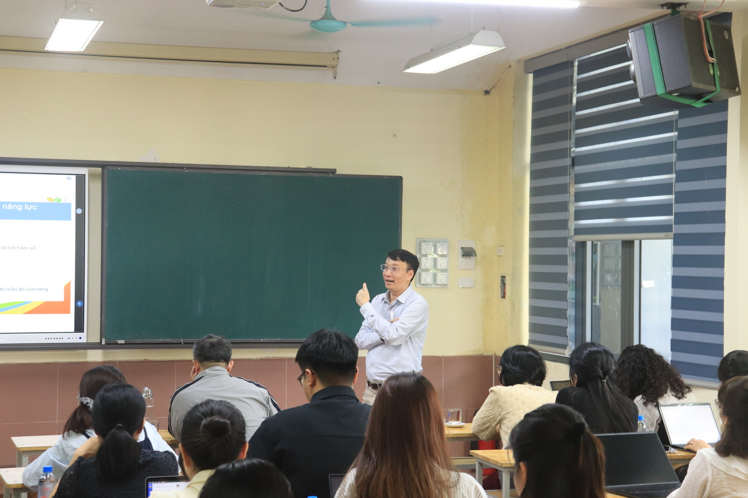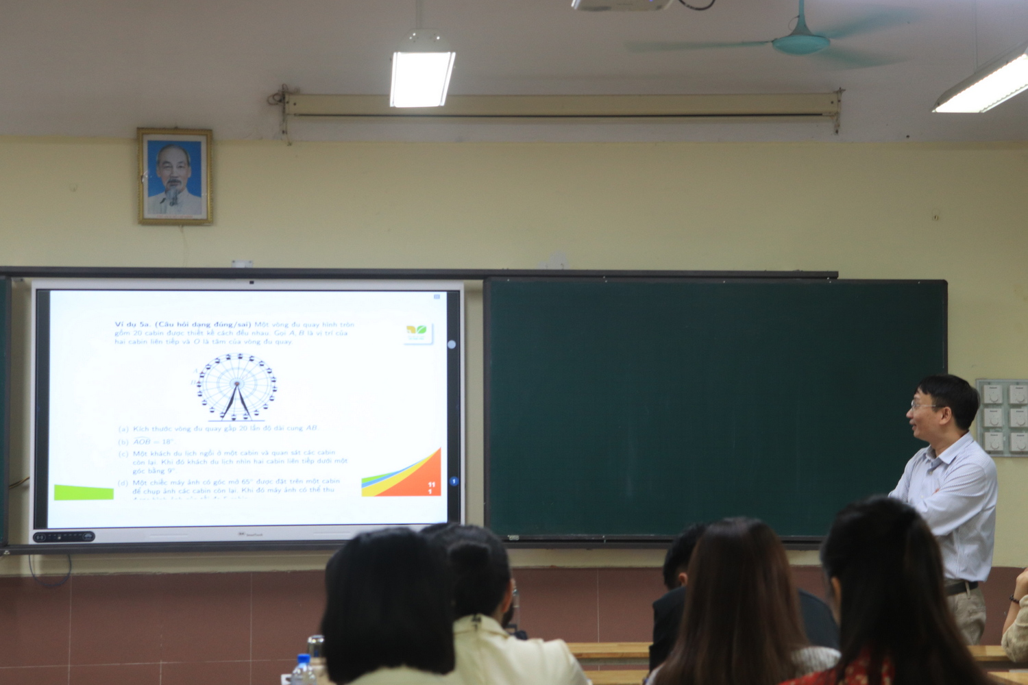 Buổi chia sẻ vinh dự được đón tiếp GS.TS. Cung Thế Anh, giảng viên cao cấp Khoa Toán - Tin, Trường Đại học Sư phạm Hà Nội. Trong phần trình bày chuyên môn, thầy đã chia sẻ những nội dung thiết thực về cách ứng dụng kiến thức Toán học vào các tình huống thực tiễn, đồng thời giới thiệu các phương pháp kiểm tra đánh giá học sinh hiệu quả, giúp giáo viên nắm bắt cách đánh giá năng lực học sinh một cách khách quan và chính xác.
